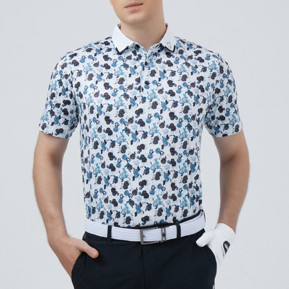 ÁO GOLF HANDEE HOA TRÀ WHITE/BLUE
