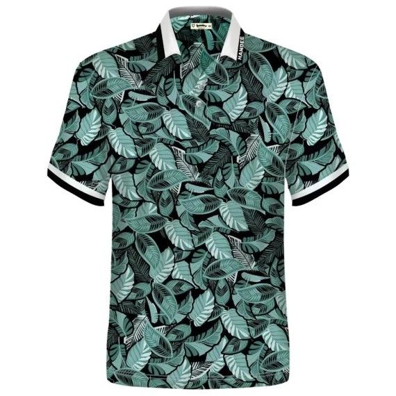 ÁO POLO NGẮN TAY HANDEE HỌA TIẾT LÁ CÂY VIỀN ĐEN