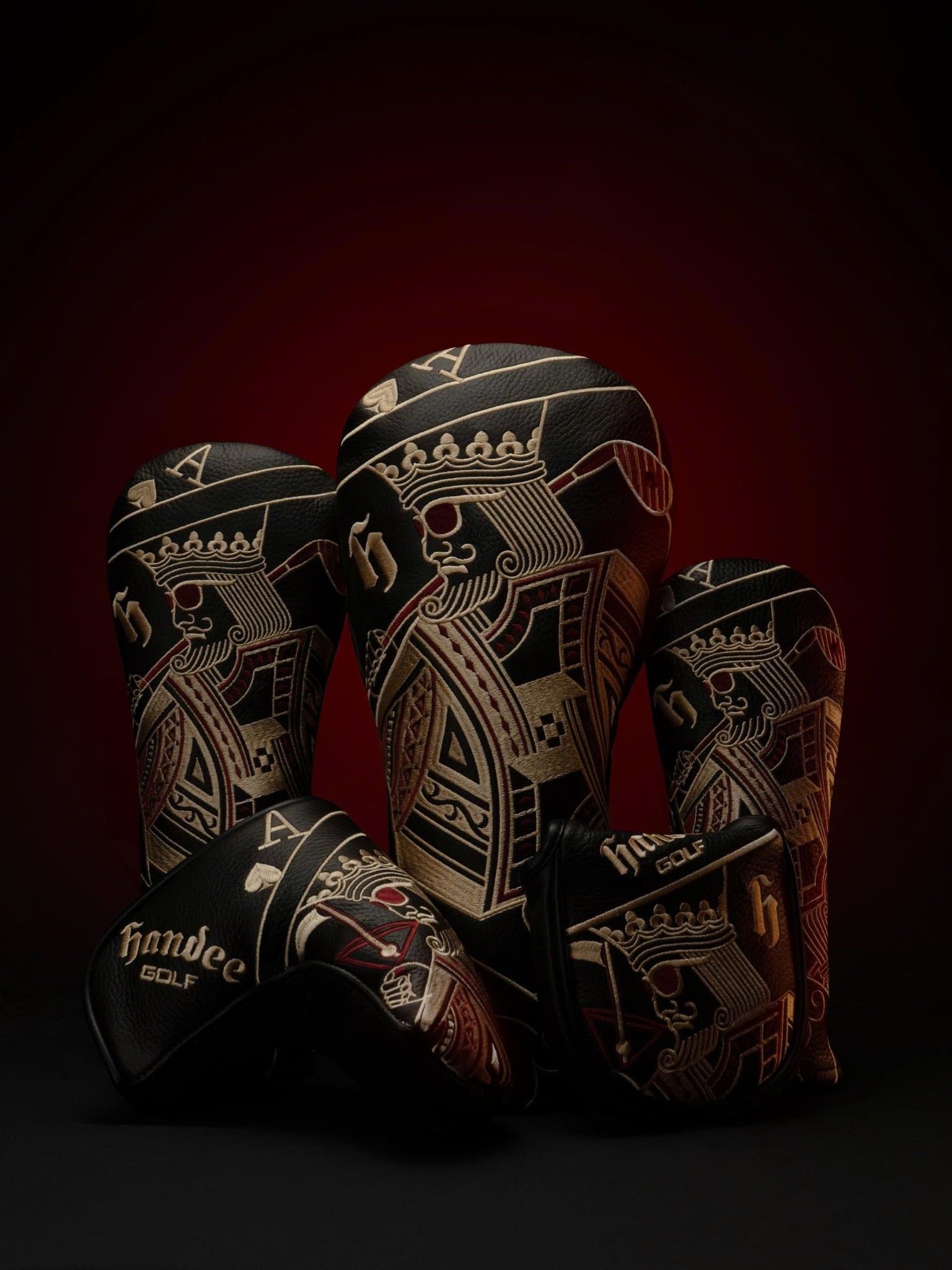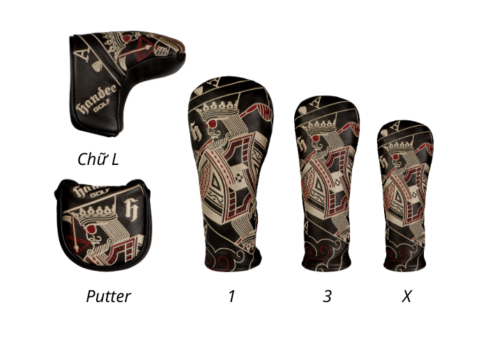 SET 5 MÓN BỌC ĐẦU GẬY HANDEE HỌA TIẾT LÁ BÀI (DA THẬT)